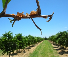 The wood beneath the blister shows a pink-orange color and it can be exacerbated by freeze damage, high water tables and salt accumulation. Gumming can also be caused by lack of copper.