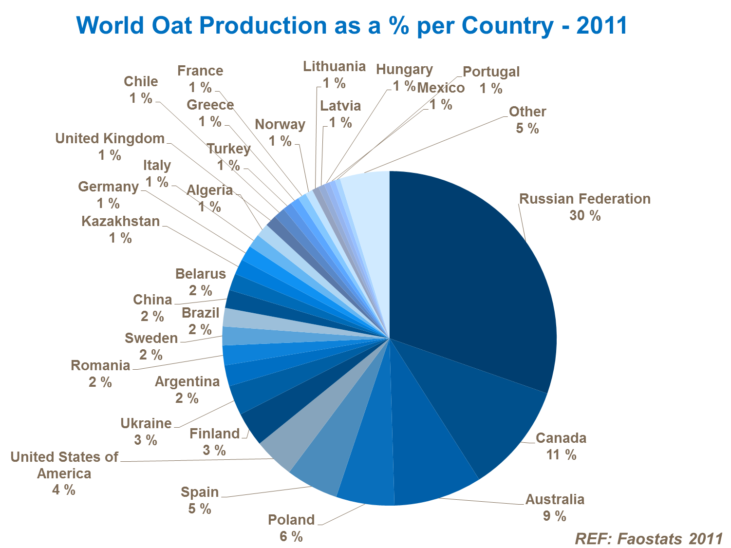 The single largest harvested area is grown in Russia, which is 30% of the global production area. Canada and Australia are second and third biggest respectively. Within European agriculture, Poland, Spain, Finland and the Ukraine are the largest producers.
