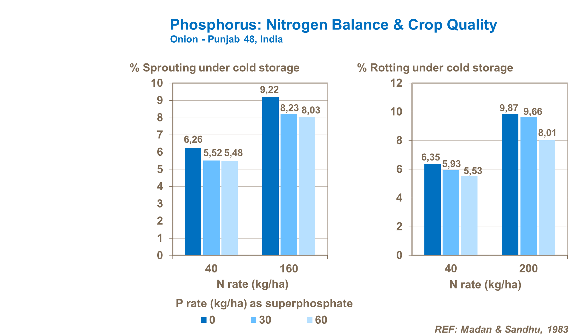 Sufficient availability of phosphorus is also important to balance potential losses in store through use of high rates of nitrogen. Phosphorus can be used to ensure top yields through use of high rates of N, yet at the same time providing little deterioration in crop quality.