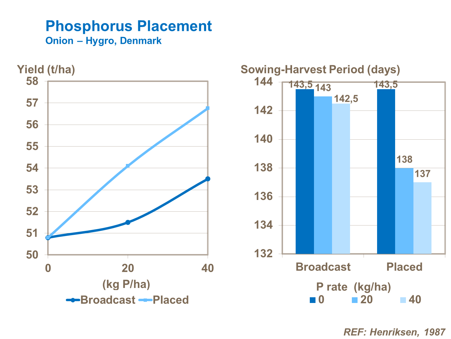 Trials in Germany have shown that placement of phosphorus within the root zone works better than when P-fertilizer is broadcast. This is particularly important in low-P containing soils, where yield is increased and crop maturity brought forward.