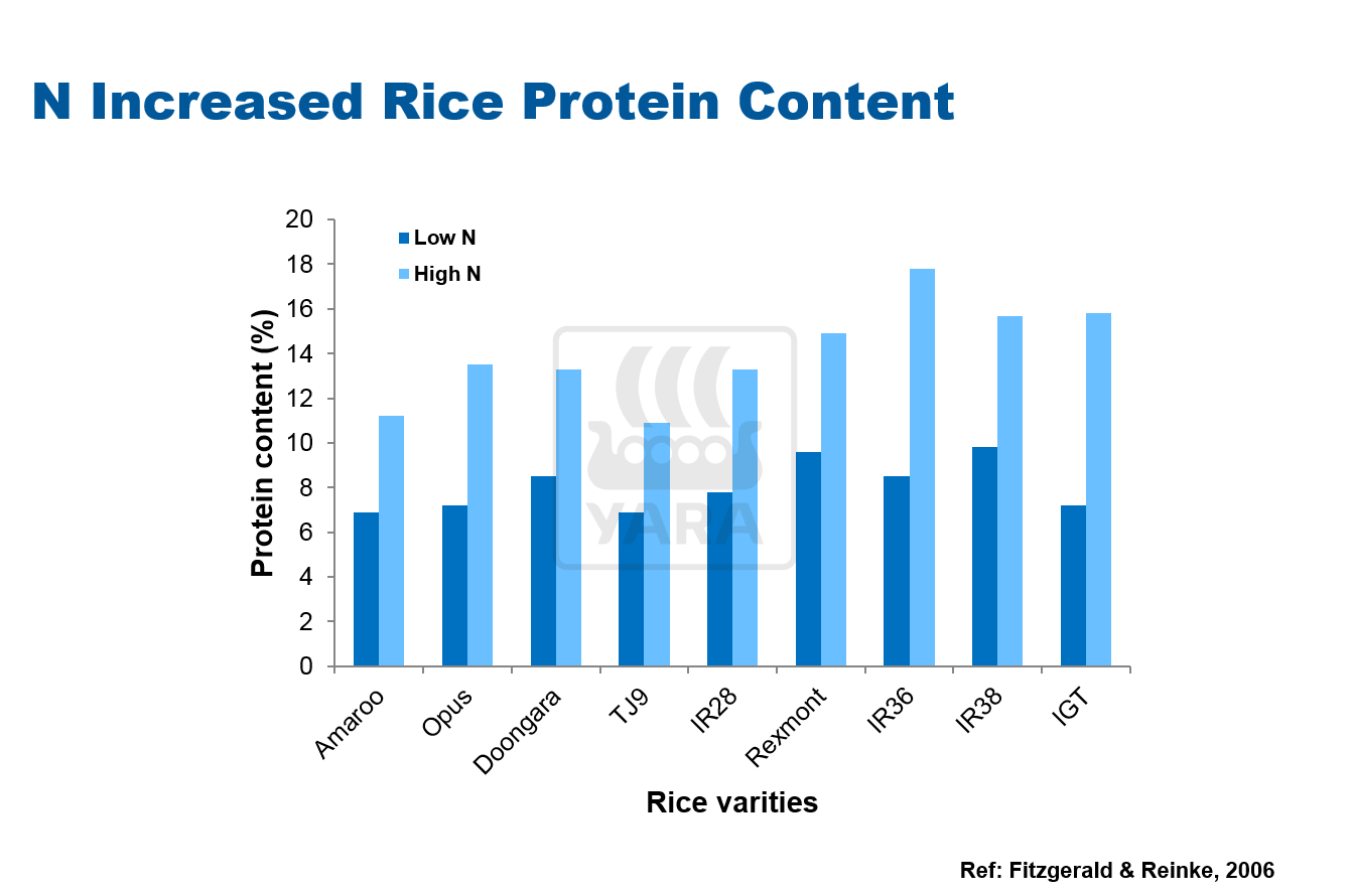Application of N fertilizer improves protein content-related traits like the milled rice rate, head rice rate and translucency (in: Chen et al., 2012).
