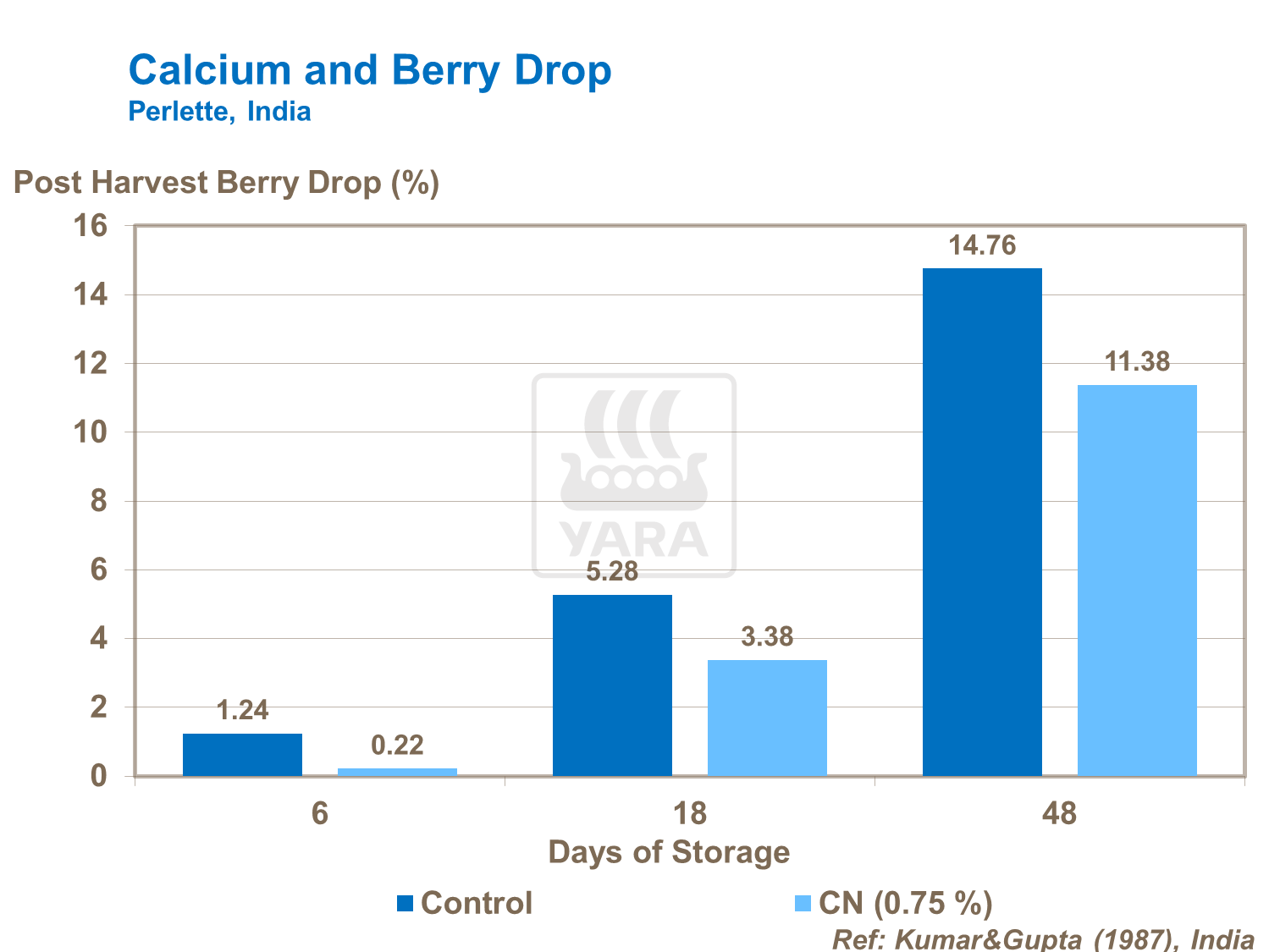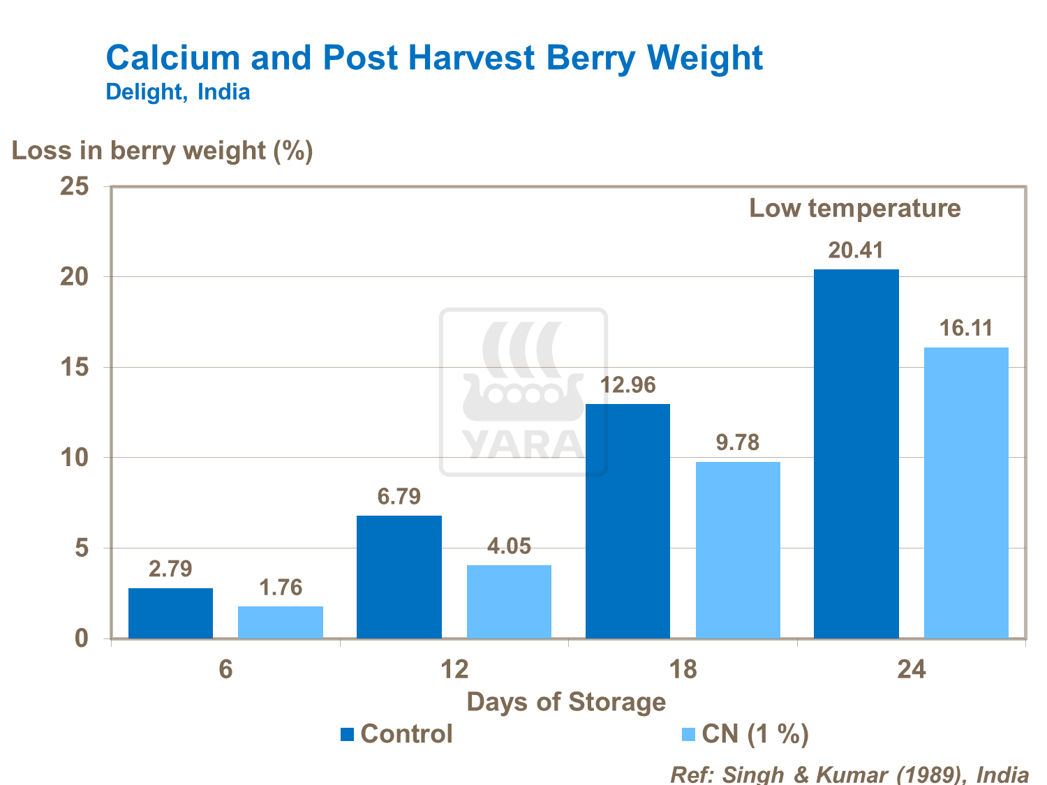 Application of calcium reduces post-harvest weight loss and shrivelling.