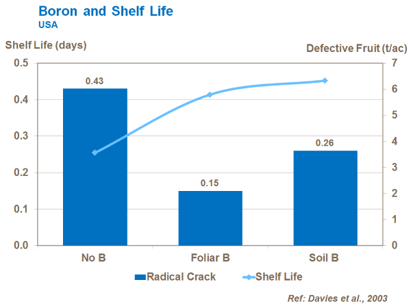 Boron has a positive influence on the level of cracking and shelf life of the tomato fruit. Any cracks on the fruit shoulder increases water loss and susceptibility to pathogen attack.
