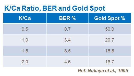 Under waterlogged conditions, soil nitrification is reduced and as a result, ammonium levels rise in the soil. In this situation, ammonium competes for uptake with calcium, resulting in increased BER risks.