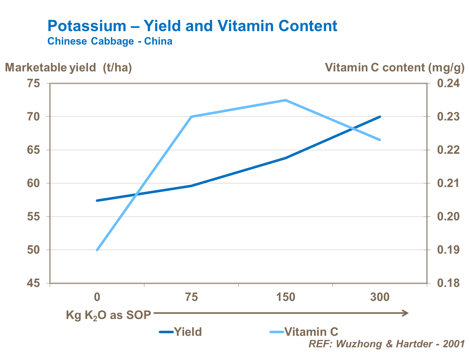 Several studies have also shown that potassium supply increases vitamin C levels in the crop.