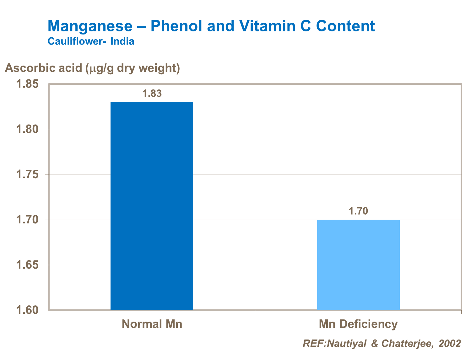Manganese is required for chlorophyll formation and oxide-reduction reactions in cells, and increases vitamin C contents. It is also involved in the metabolism and synthesis of proteins. Crops that are well supplied with manganese have higher vitamin C contents.