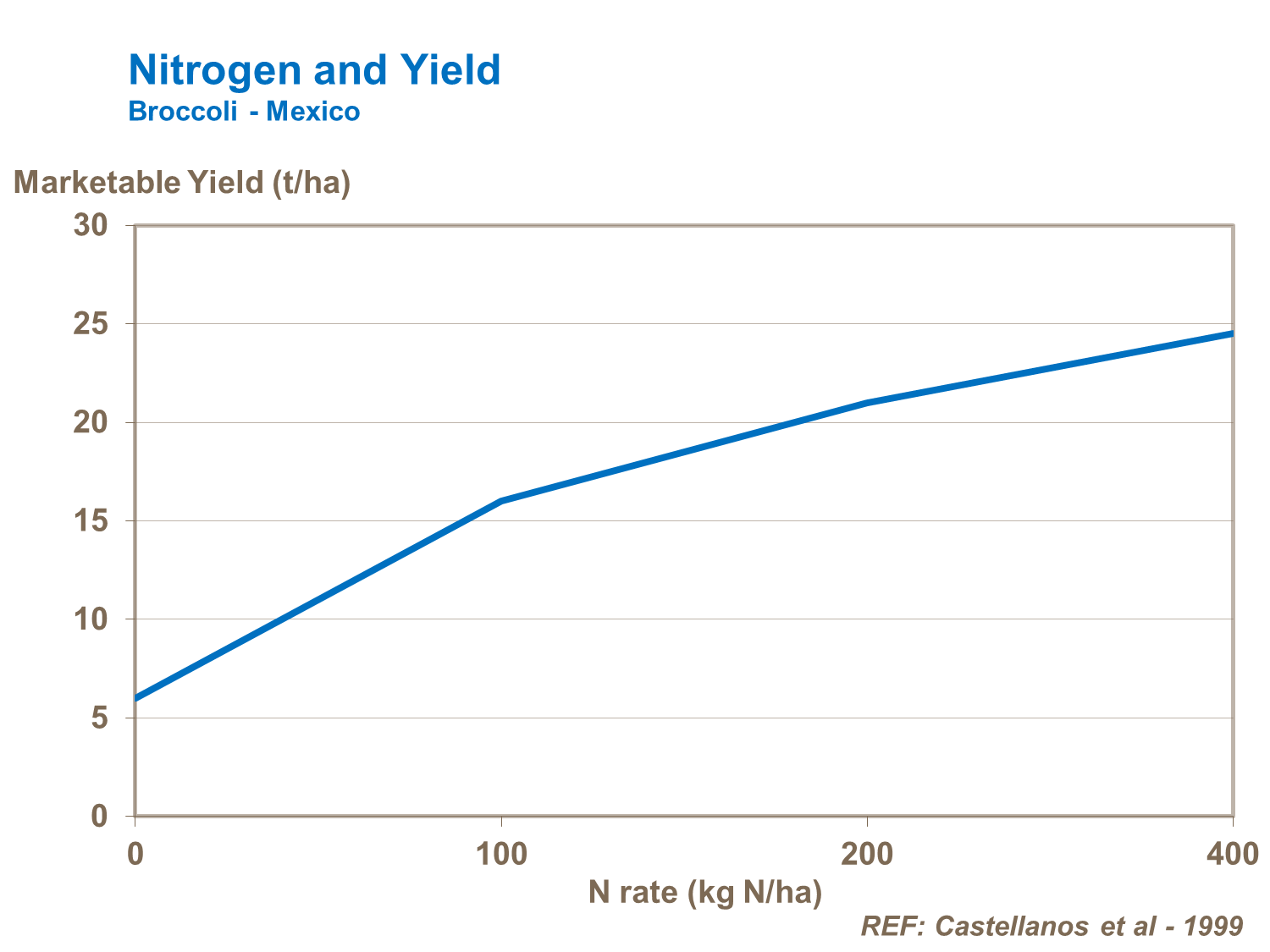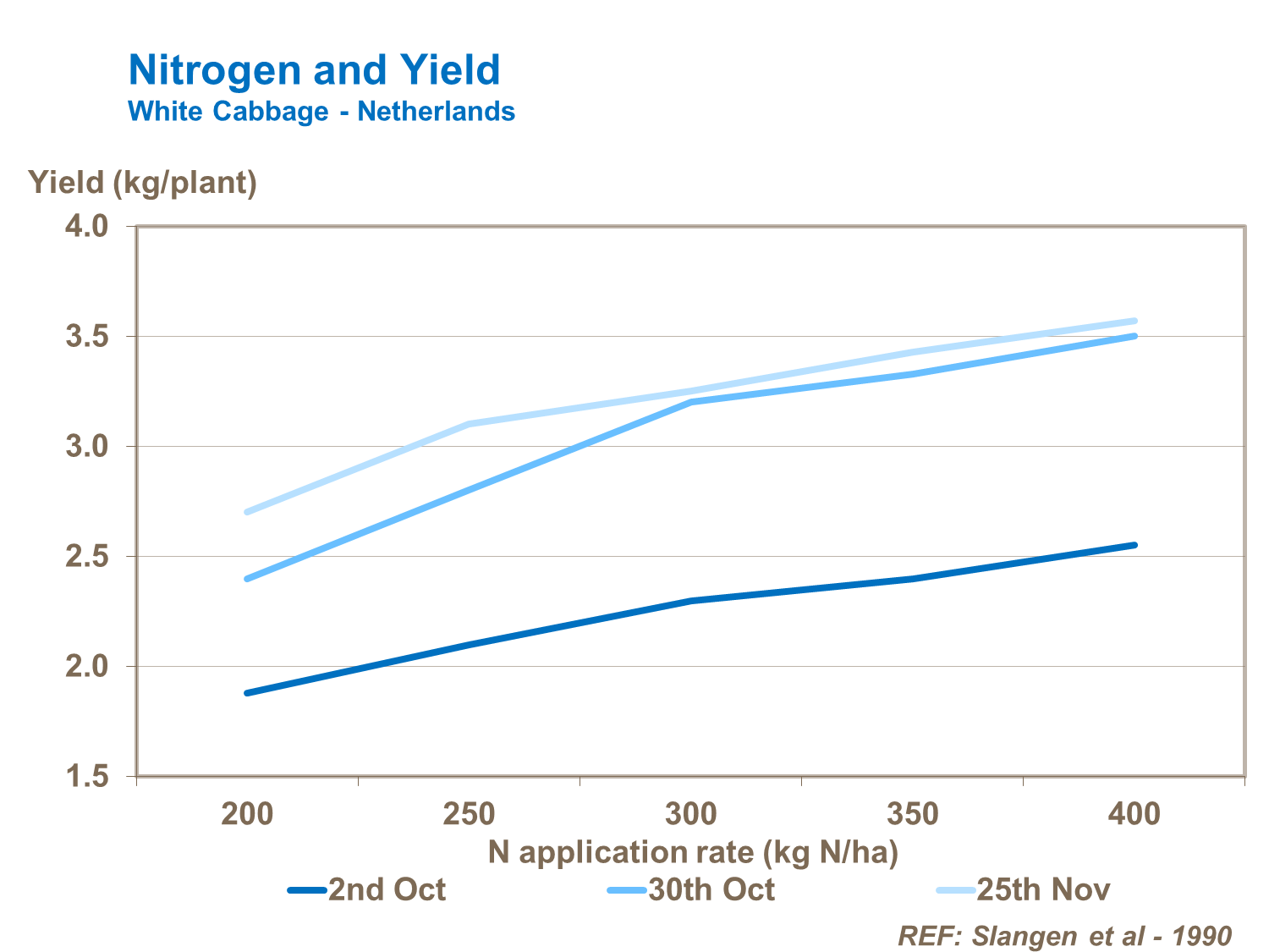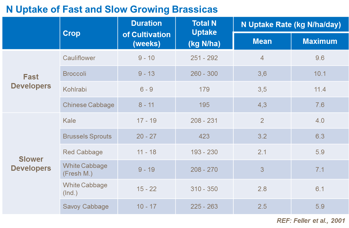 Brassicas are highly responsive to applied nitrogen and in field studies, nitrogen supply is often too low to properly confirm peak demands.