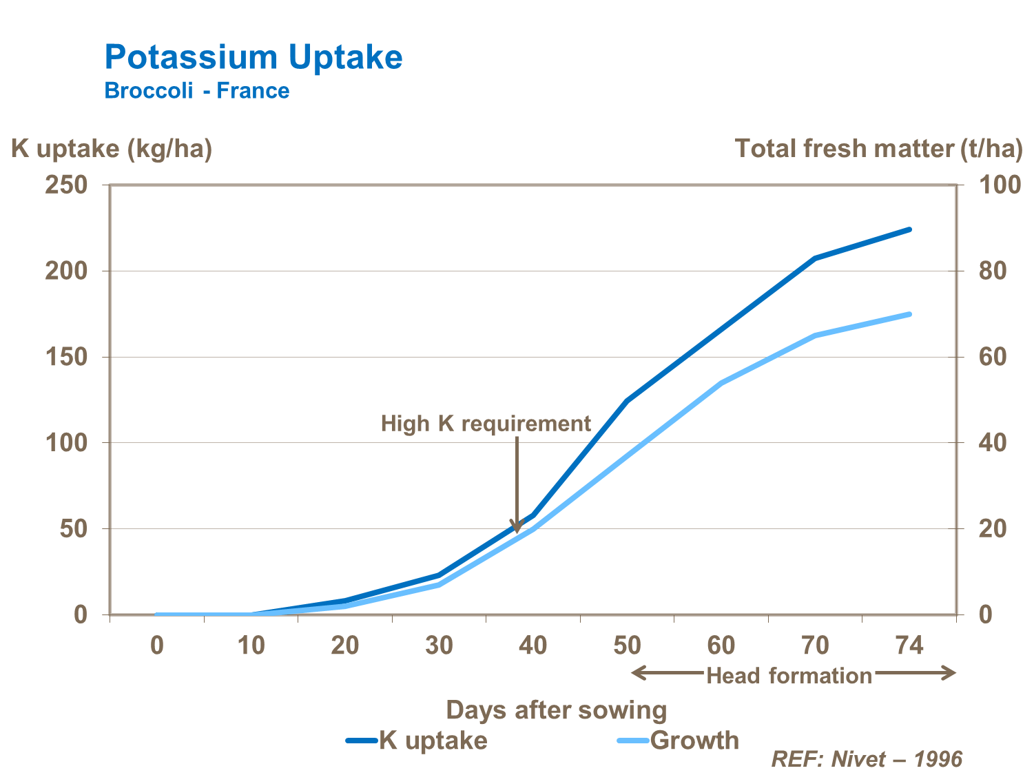 Fast growing types (e.g. cauliflower and broccoli) require a high nitrogen supply as they have high nitrogen uptake rates and a high nitrogen requirement, particularly during early growth