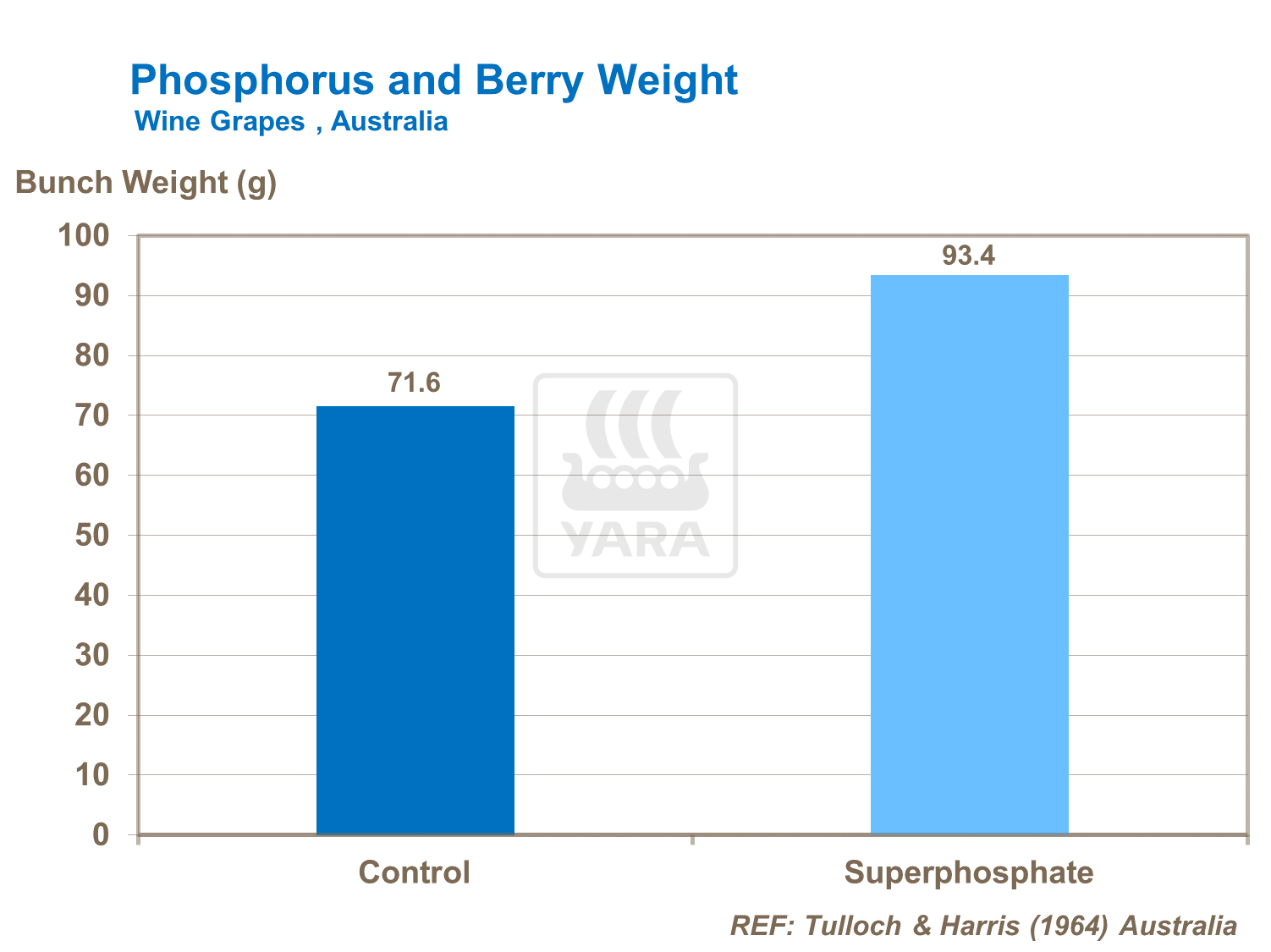 Most of the phosphorus comes from soil reserves as grapes are good at extracting phosphorus from the soil. Phosphorus is also very mobile in the vine. Where phosphorus is naturally low in soils, applied fertilizer phosphate increases wine grape berry set and crop yield.