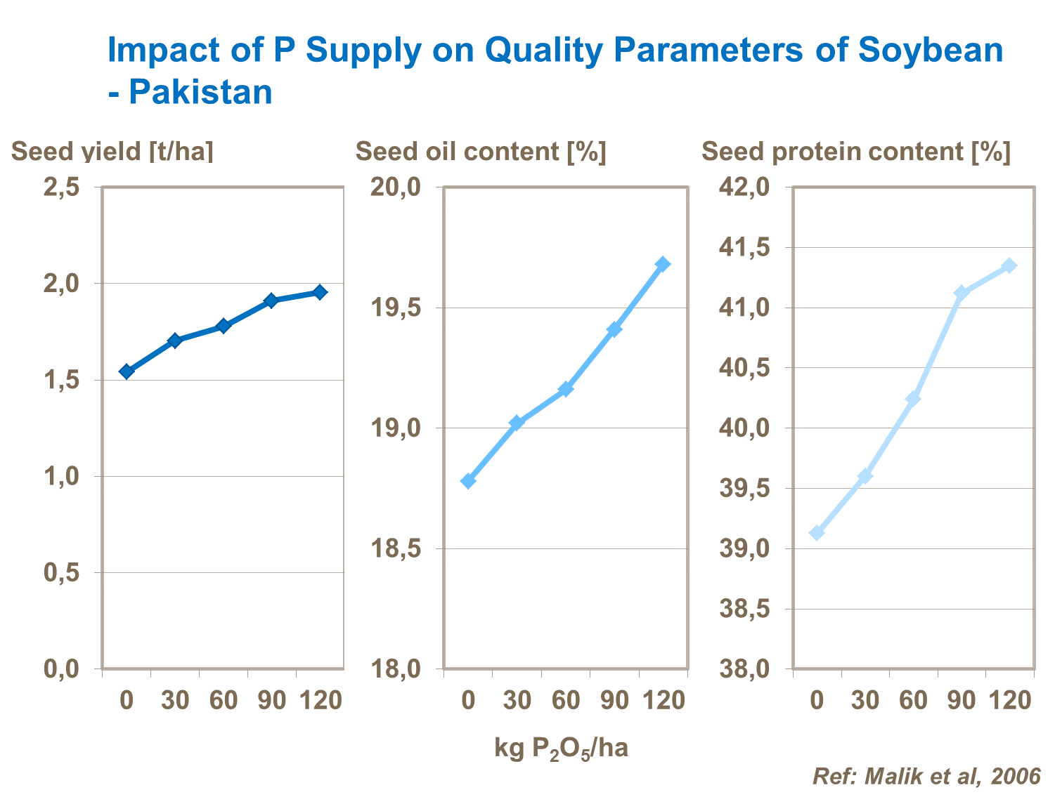 Le phosphore est important pour obtenir une récolte de qualité, comme le montrent ces expériences au Pakistan. Il améliore le taux de photosynthèse, le transfert d’énergie, l’activité enzymatique, le développement des racines, le mouvement et l’absorption d’autres nutriments, la production de nœuds et, par conséquent, la fixation de l’azote, la croissance et la maturation, le nombre de graines, leur taille et leur germination. Avec le potassium, il peut réduire les dommages causés par plusieurs maladies végétales.